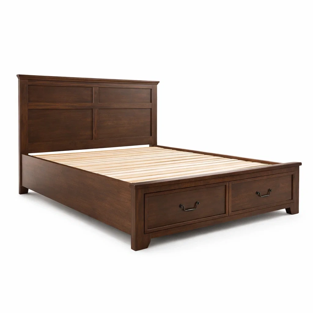 Lit avec rangement en bois marron avec tiroirs